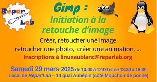 Formation sur le logiciel de traitement d'images Gimp samedi 29 mars