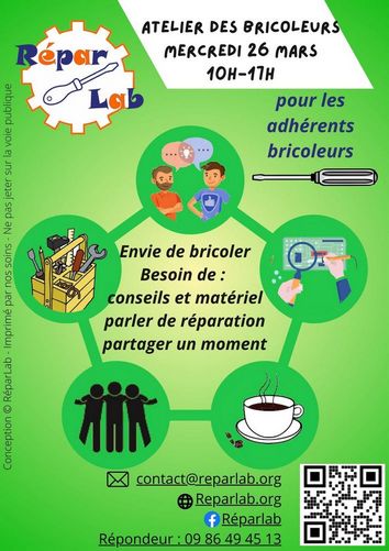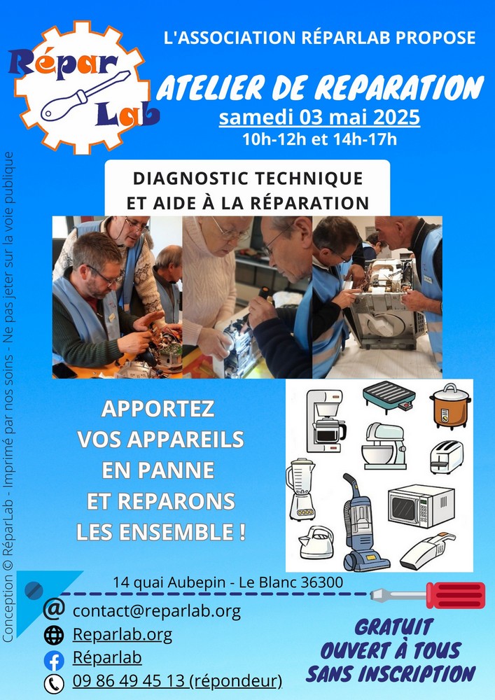 Atelier de réparation mensuel au RéparLab du samedi 3 mai 2025