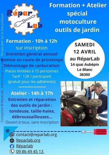 Atelier d'entretien et de réparation du matériel de motoculture samedi 12 avril