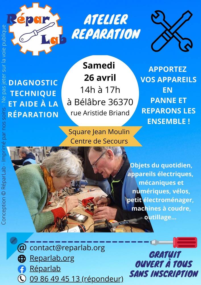 Atelier entretien et réparation des objets du quotidien du samedi 26 avril à Bélâbre