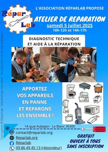 Atelier de réparation mensuel au RéparLab du samedi 5 juillet 2025