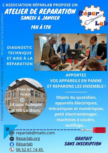 Atelier entretien / réparation des objets du quotidien le 6 janvier 2024 au Blanc
