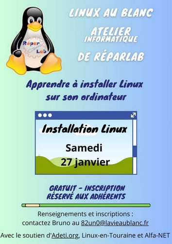 Atelier numérique : installation Linux le 27 janvier 2024 au Blanc