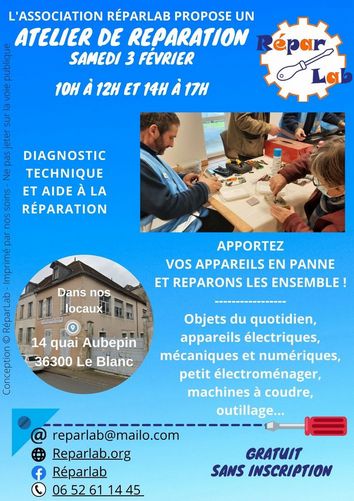 Atelier entretien / réparation des objets du quotidien le 3 février 2024 au Blanc