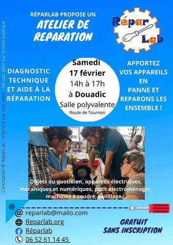 Atelier entretien / réparation des objets du quotidien le 17 février 2024 à Douadic