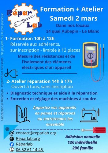 Atelier entretien / réparation des objets du quotidien le 2 mars 2024 au Blanc
