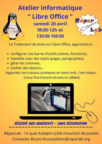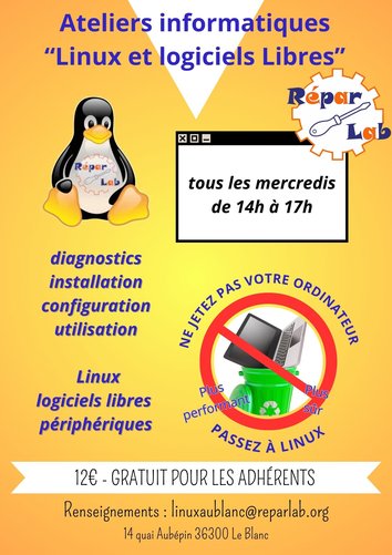 Atelier informatique Linux et logiciels libres des mercredis après midi au Blanc