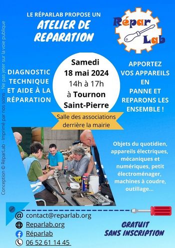 Atelier entretien / réparation des objets du quotidien le18 mai 2024 à Tournon Saint Pierre