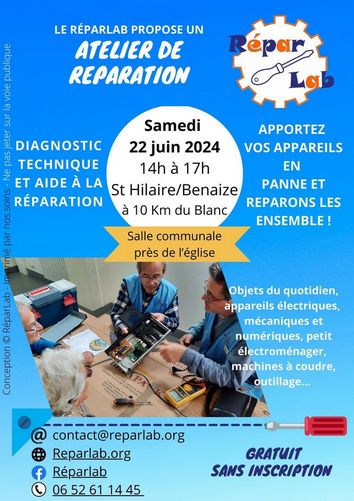 Atelier entretien / réparation des objets du quotidien le 22 juin 2024 à St Hilaire sur Benaize
