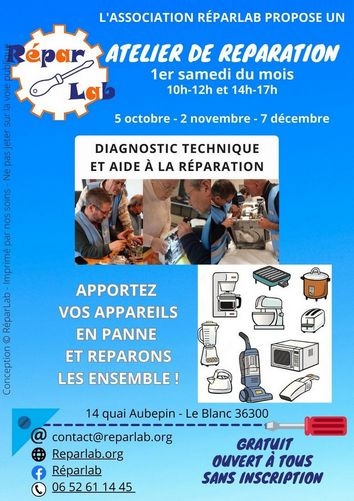 Atelier entretien / réparation des objets du quotidien le 2 novembre 2024 au Blanc