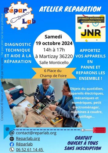 Atelier entretien / réparation des objets du quotidien le 19 octobre 2024 à Martizay