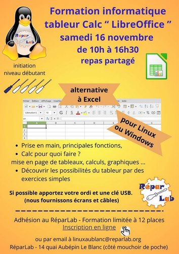 Formation sur le tableur Calc de LibreOffice le 16 novembre 2024 au Blanc